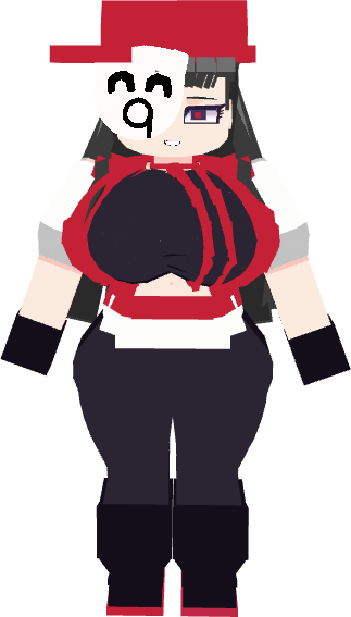Yixi Butcher Vanity Jenny Mod Model retextures Jenny with the appearance of Yixi, a stylized butcher girl from the Vanity mod (a cosmetic overhaul addon enhancing entity visuals). It transforms Jenny into a “meaty waifu,” blending her versatile personality with a dark, culinary theme featuring a red cap and half-mask, black hair with red accents, a revealing white-and-red uniform over a curvaceous figure, and subtle bloodied apron details.