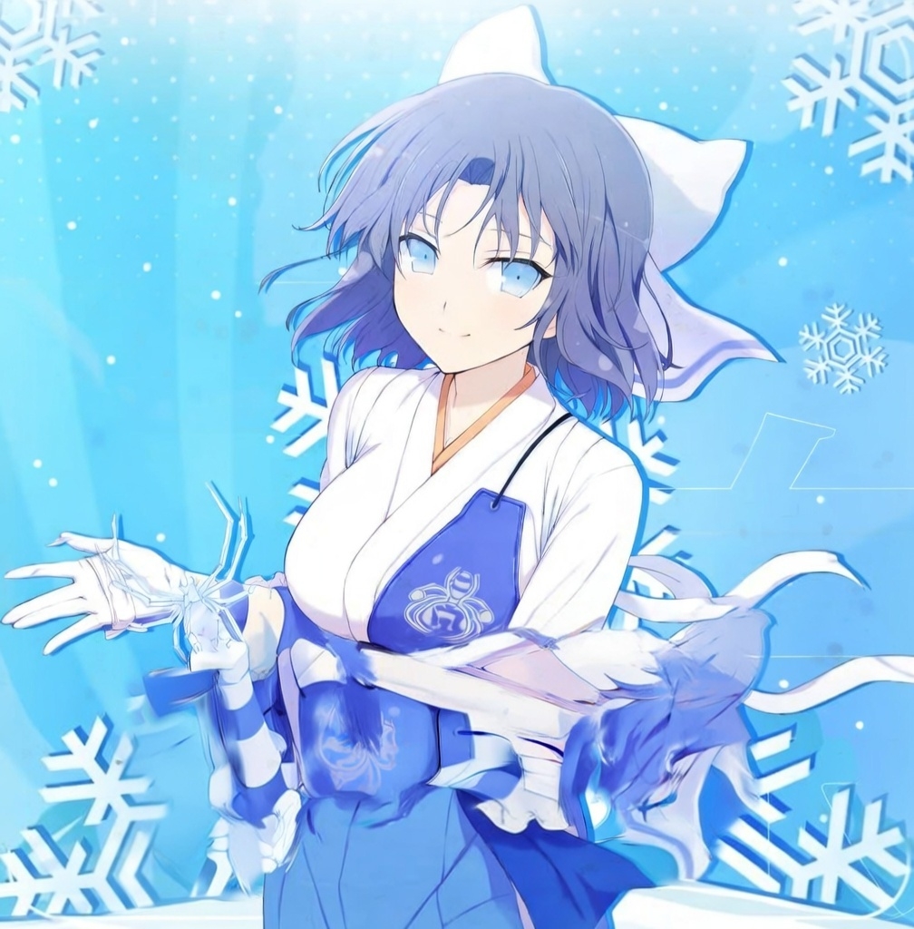 Yumi For Bia Jenny Mod Model replaces Bia with Yumi, a cute snow bunny miko (shrine maiden) featuring short wavy blue hair, blue eyes, large white bunny ear bow, white kimono with blue haori/apron (ice spiderweb patterns).