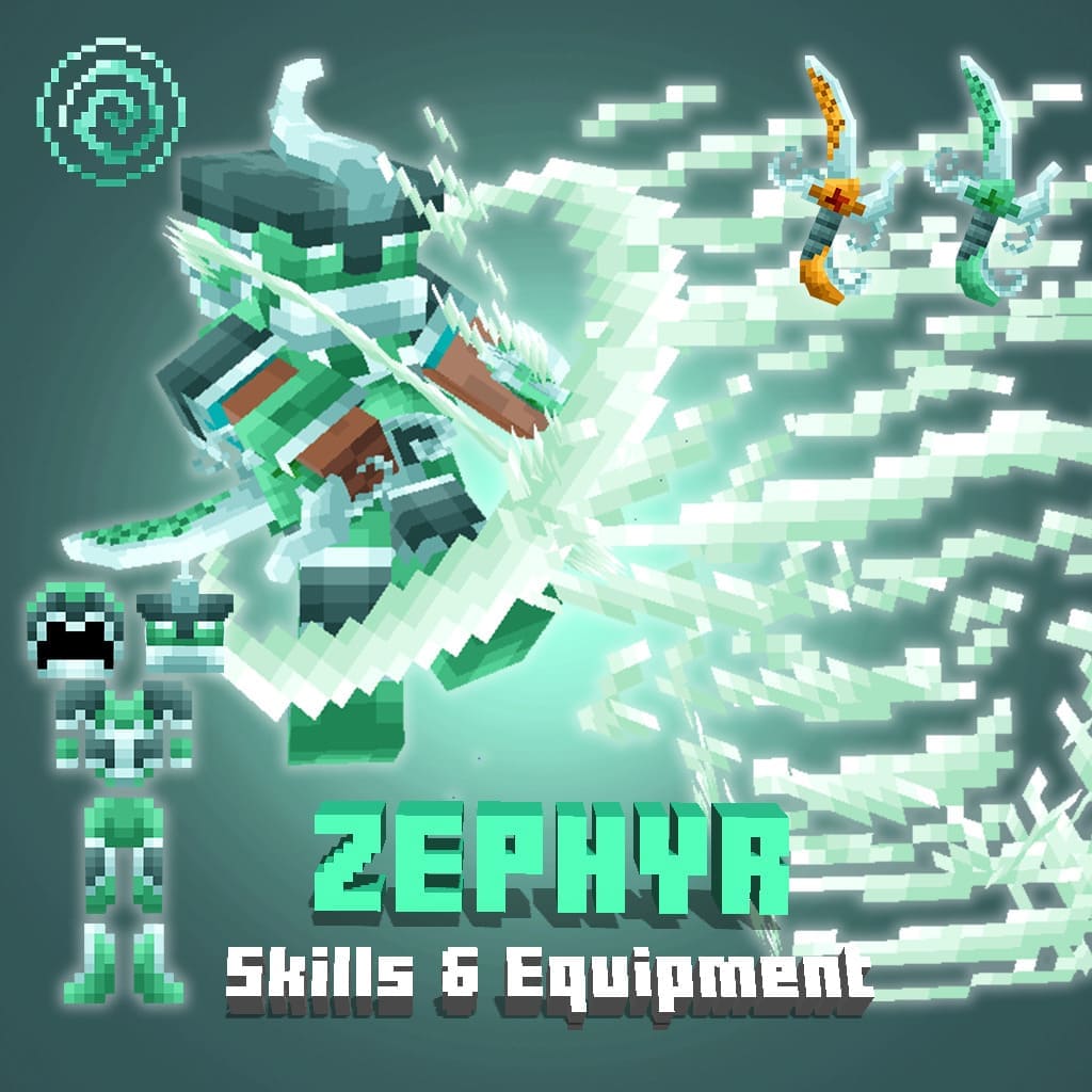 Zephyr Skills And Equipment Model add 7 custom skills and 7 pieces of equipment to your game! Zephyr is an air-element character, which you can become in the game by equipping his armor and weapons and using his air-element skills.
