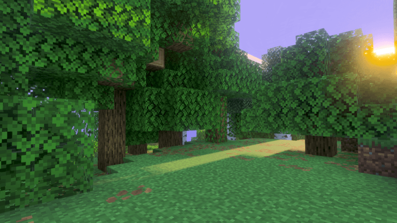 ZEU7 Shader (v26, 1.21) makes the image look more energetic and creates a magically warm atmosphere throughout the day. There’s a balance between the warmth of the sun and the electric mist as time goes on.